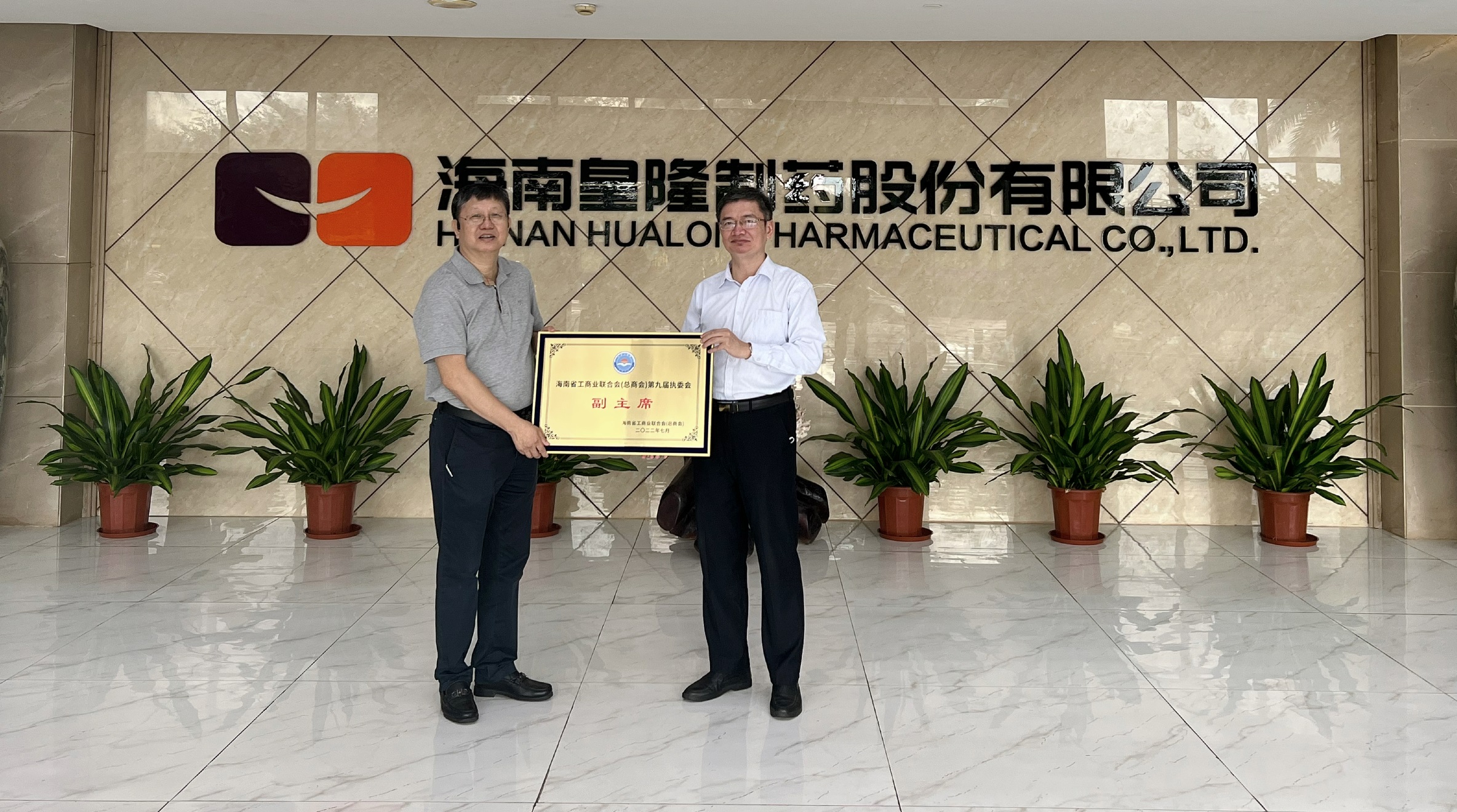 2022年9月28日上午,省委統(tǒng)戰(zhàn)部副部長(zhǎng) 、省工商聯(lián)黨組書記林勝一行走訪調(diào)研我司,重點(diǎn)了解企業(yè)生產(chǎn)經(jīng)營(yíng)、復(fù)工復(fù)產(chǎn)情況并頒發(fā)海南省工商聯(lián)副主席牌。